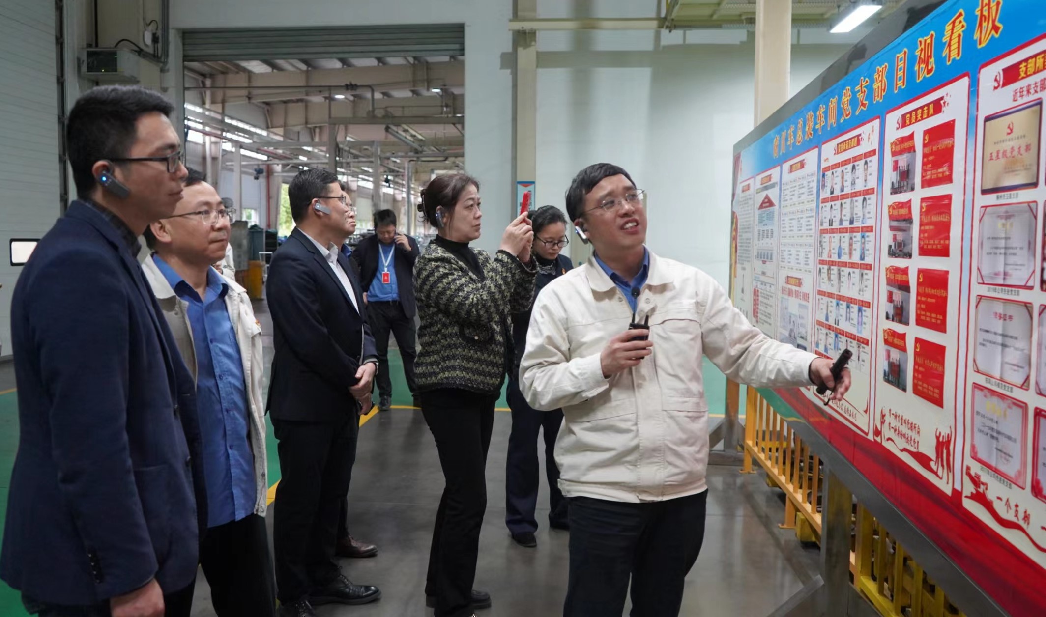 隨后,在東風柳汽黨委委員、副總經理姚利文的帶領下,一行人深入東風柳汽商用車總裝車間詳細了解基層一線黨建開展和企業文化宣傳等方面的內容。福達集團黨委副書記王錦明表示,東風柳汽的黨建工作法和成效值得我們借鑒和學習,特別是在黨建和經營業務深度融合方面的做法給了我們很大的啟發,希望后續雙方能在黨建工作和經營業務方面加強聯系、加深合作。
