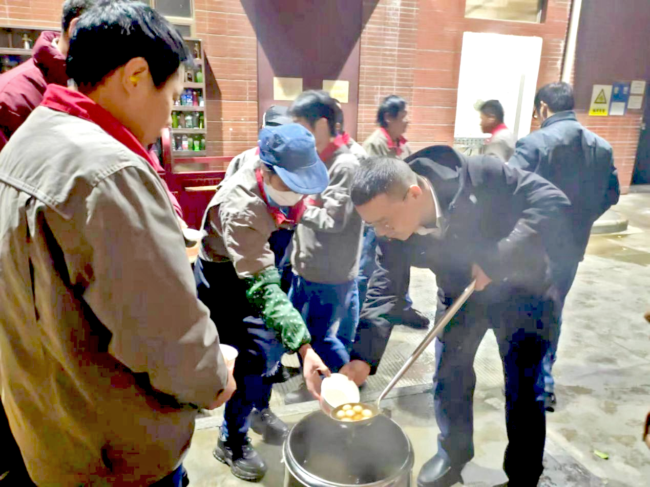 面對(duì)員工飽滿(mǎn)的工作熱情,在冬至到來(lái)之際的寒冷夜晚,公司人力資源總監(jiān)胡坤麗與各子分公司工會(huì)主席帶著深切牽掛,前往生產(chǎn)一線(xiàn),向持續(xù)奮戰(zhàn)的員工表示關(guān)心和問(wèn)候。各公司工會(huì)細(xì)心地為員工們準(zhǔn)備了熱乎的紅糖水和甜甜糯糯的湯圓,希望這傳統(tǒng)的冬至食品能為辛勤工作的員工們驅(qū)散寒冷,帶來(lái)一絲家的溫馨。