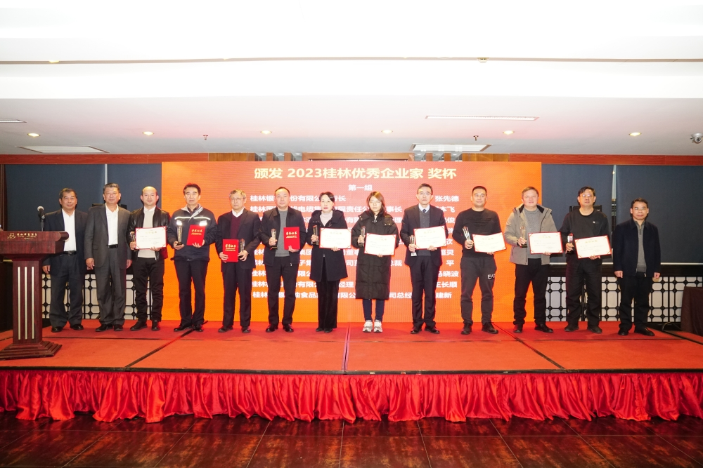 ▲公司總經(jīng)理王長順(左五)參加“2023桂林市優(yōu)秀企業(yè)家”頒獎儀式