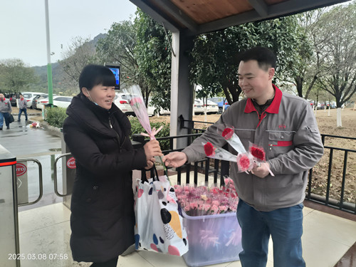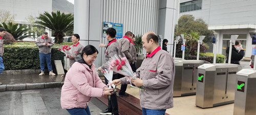3月8日清晨,公司男領(lǐng)導(dǎo)們早早守候在公司一道門、二道門、南門入口處,為每一位上班的女職工送上嬌艷欲滴的鮮花和節(jié)日的祝福。一束束鮮花,一張張笑臉,構(gòu)成了清晨最美麗的風(fēng)景線。