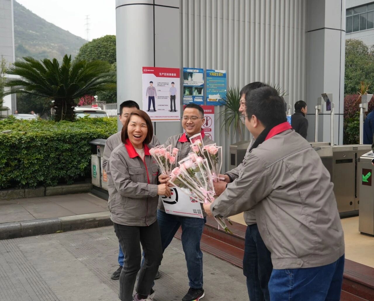 3月7日清晨,公司男領(lǐng)導(dǎo)們化身“送花使者”,早早守候在辦公樓、廠區(qū)入口。他們將一束束鮮花遞到每一位踏入公司的女員工手中,送去節(jié)日的第一縷芬芳與第一聲問候。這不僅是一份節(jié)日的儀式感,更是公司對(duì)“她力量”潤(rùn)物無聲的深情致敬。