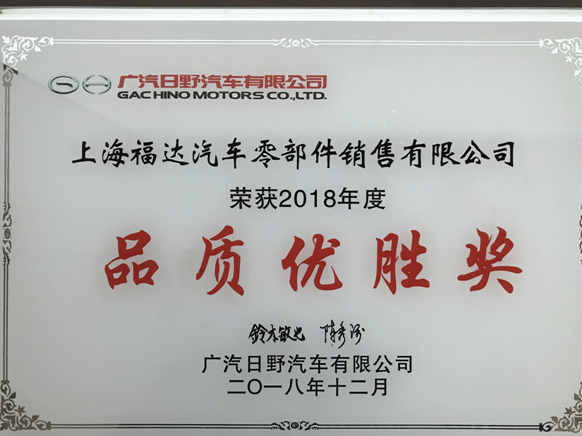 近日廣汽日野汽車(chē)有限公司召開(kāi)供應(yīng)商年度會(huì)議,會(huì)上福達(dá)股份產(chǎn)品榮獲了廣汽日野2018年度“品質(zhì)優(yōu)勝獎(jiǎng)”。
